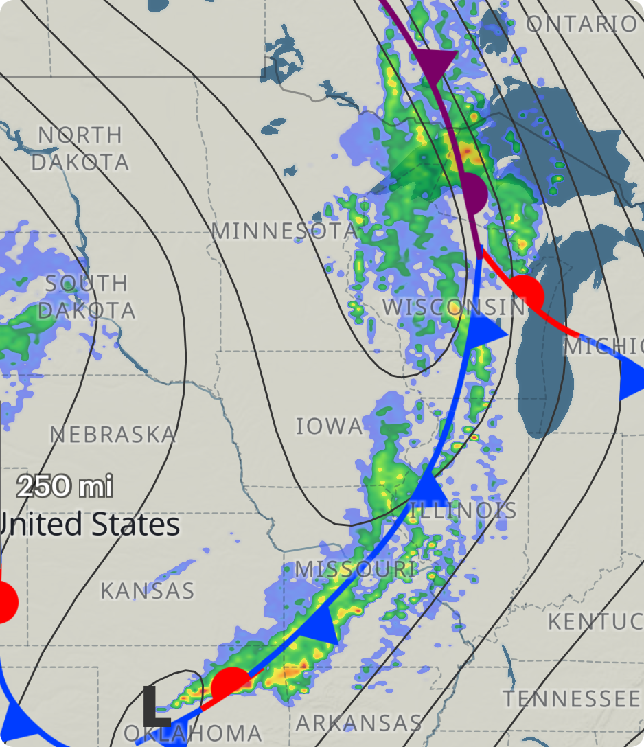 It moves fast. Expect wind shifts, temperature drops, and very likely — thunderstorms.